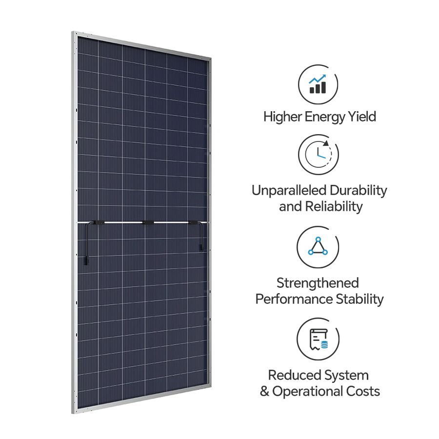 Durch die Verwendung der 210–182 mm großen SMBB-Technologie (Super Multi BusBar) monokristalliner Halbzellen des N-Typs für Hochleistungs-Solarzellen werden durch die höhere Komponentenleistung die System-BOS-Kosten effektiv gesenkt