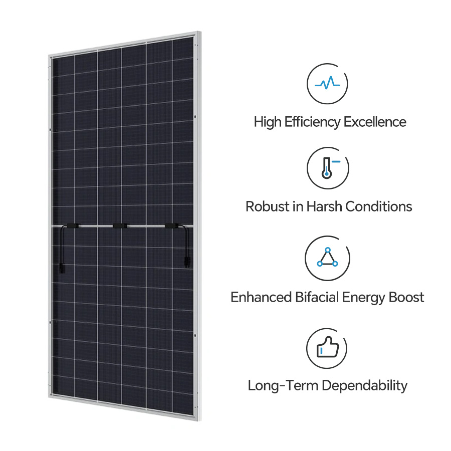 Durch die Verwendung der 210–182 mm großen SMBB-Technologie (Super Multi BusBar) monokristalliner Halbzellen des N-Typs für Hochleistungs-Solarzellen werden durch die höhere Komponentenleistung die System-BOS-Kosten effektiv gesenkt