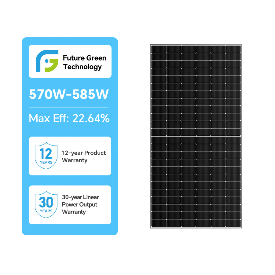 Adopting 182mm SMBB (Super Multi BusBar) Monocrystalline Half Cut N-Type Cells Technology For High Power Solar Cells, Higher Component Power Effectively Reduces System BOS Costs  Item No: FG580-M10N  Capacity: 570-585W  Cells Number: 144Pcs  Min Order: 36 PCS  Module Efficiency(%): 22.52%  Dimemsions: 2279*1134*30MM  Weight: 31.5KG  Packing Number: 36Pcs/Pallet  40'HQ Container: 20 Pallets / 720 PCS