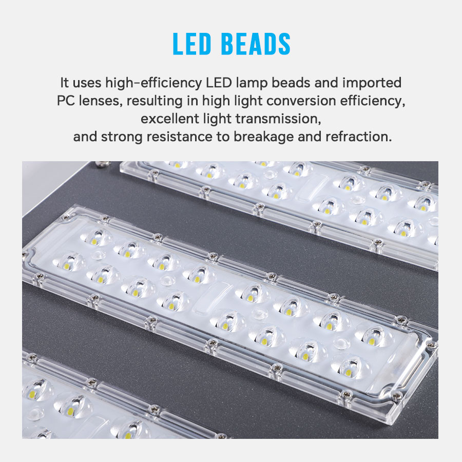 • Premium Hardware Configuration: 65W monocrystalline solar panel (high conversion efficiency) + 48 pcs of 3W high-brightness LED beads, ensuring sufficient brightness and strong durability.