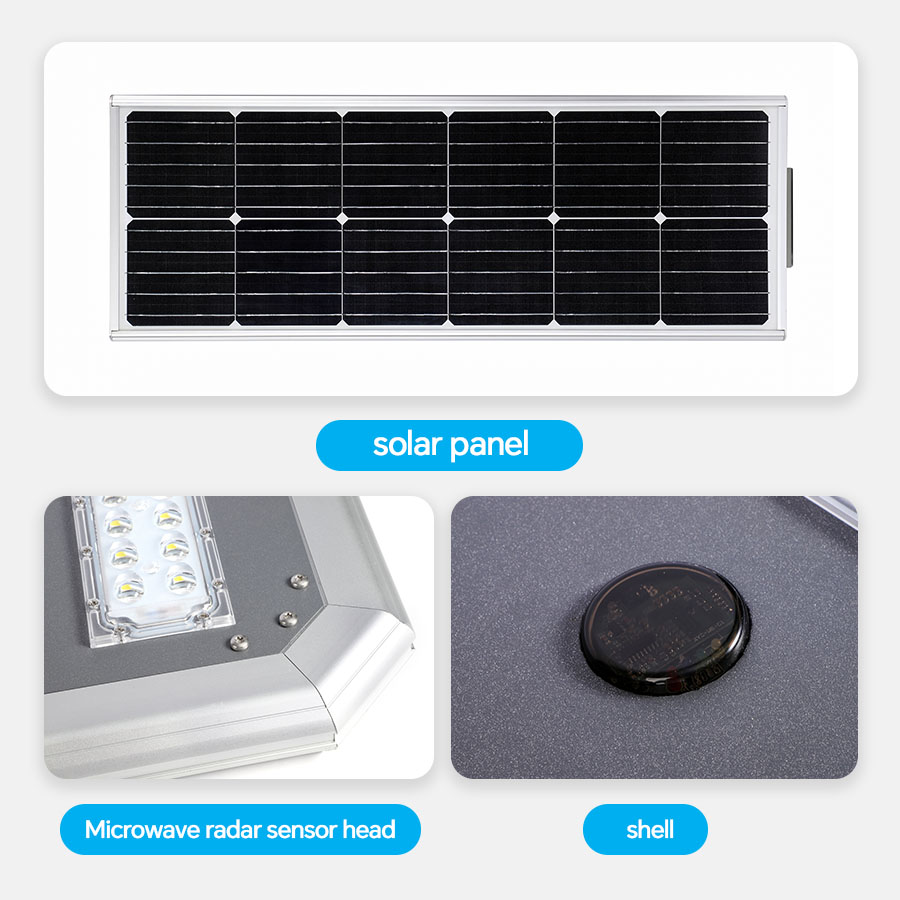 • Charging & Lighting Mode: MPPT Charging + Microwave Radar Sensing + Segmented Time Control + Intelligent Control